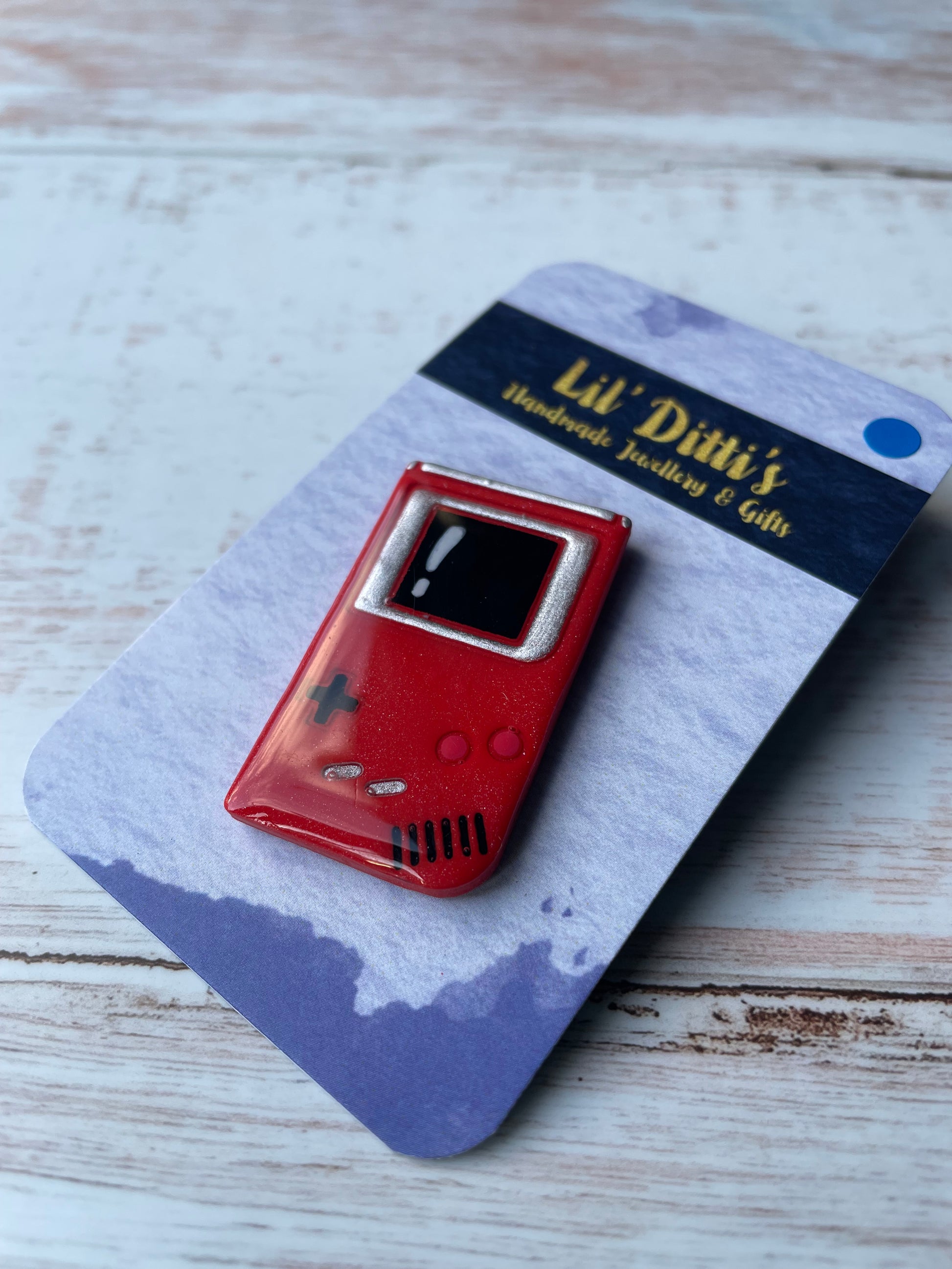 Add some color and nostalgia to your outfits or bags with these Gameboy Colour polymer clay pins. Each one is meticulously handmade, sparkly, and painted with love. Coated in durable UV resin for that juicy Lil' Ditti's shine. These are available in a variety of colours and customisable upon request, have a childhood console you'd like to turn into a pin? reach out via the contact form on the website.