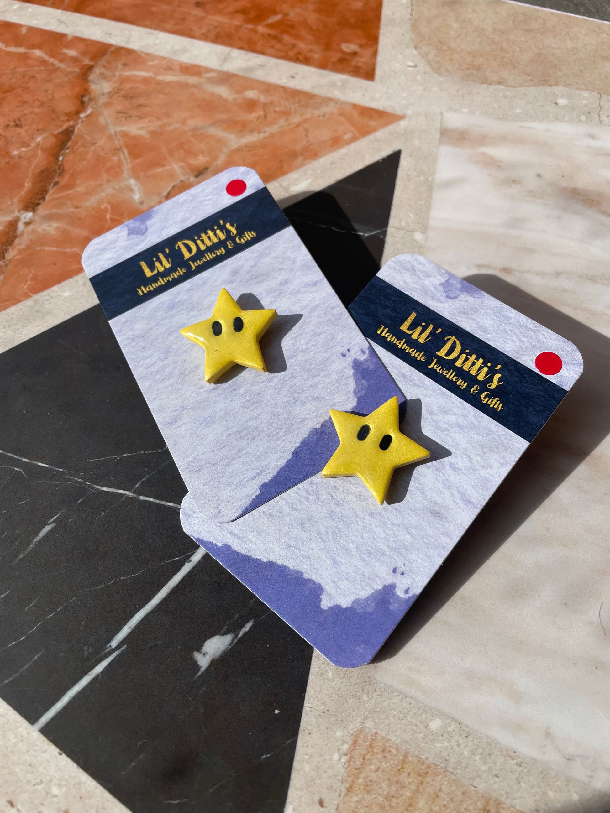 each star is handmade and painted with yellow mica, sealed in UV resin for glossy shine and longevity. all hardware is surgical steel :)
